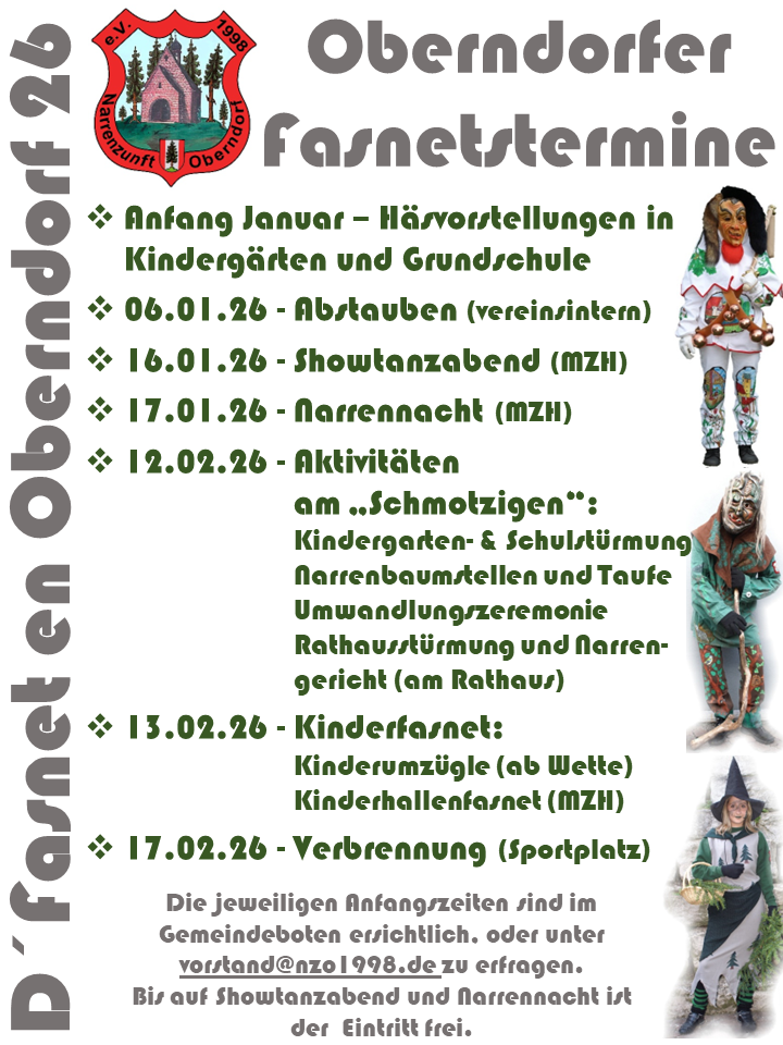 | Fr. 13.02.2026 | 14.00 Uhr | NZO - 3. Kinderfasnet in Oberndorf (Umzügle & Halle) |