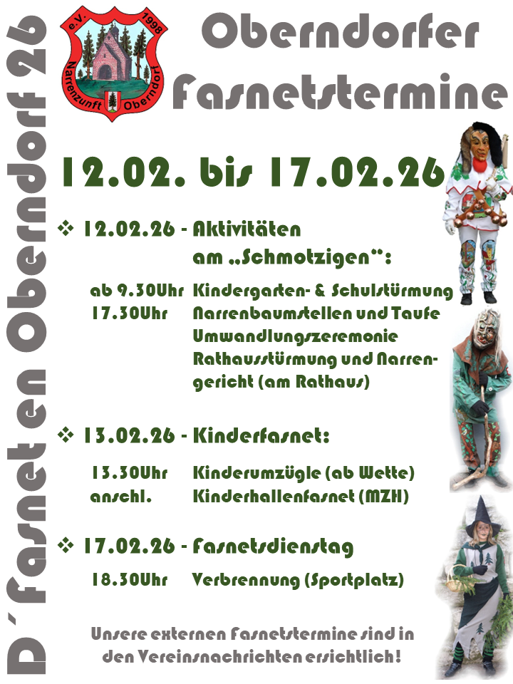 Die Narrenzunft Oberndorf 1998 e.V. wurde 1998 gegründet und besteht aus den Fasnetsfiguren Schrädl, Weible, Kropfer, der Showtanzgruppe Sugar&Spice und der Männershowtanzgruppe "Stets Bemüht".