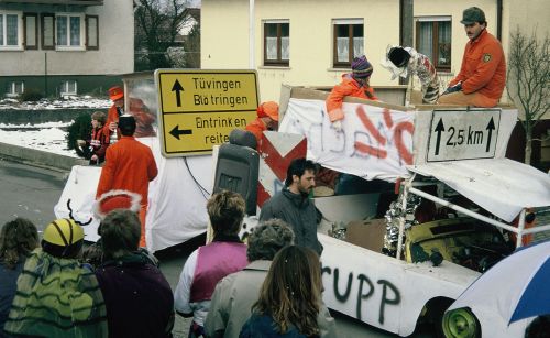 Im Jahr 1995 nahmen die Fasnetsfreunde so an der Dorffasnet teil. Auch den ersten auswärtigen Umzug absolvierte die Truppe bei den Nachbarn in Poltringen.